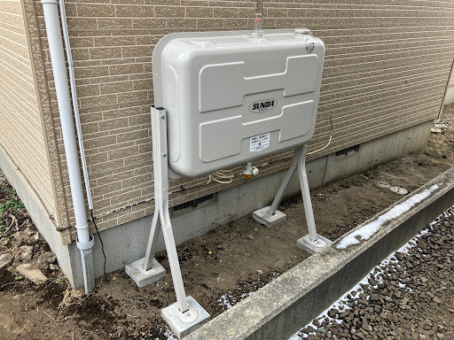 2025年12月東方沖大地震が発生し、お客様から、「ホームタンクが転倒し、お隣の敷地へ灯油が全量流出してしまった。消防には届け出て、ホームタンクを応急処置で立ててはもらったけど、本格的に直すのは業者に頼むように言われた、来てもらえるか?」と連絡が来ました。現場に急行すると、そこには支えをしてかろうじて立っているだけの、極めて危険な状態のタンクがありました。 詳しく調査したところ、従来の設置場所は地盤が非常に緩いことが判明。お客様に状況を説明し、「同じ場所ではなく、安全な場所への移設」をご提案しました。お客様からは「プロに任せるよ」という、信頼のお言葉をいただき、地盤がしっかりしている場所を選定して、今後倒れないようしっかりと固定しました。
