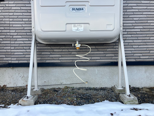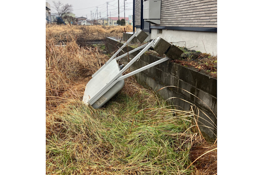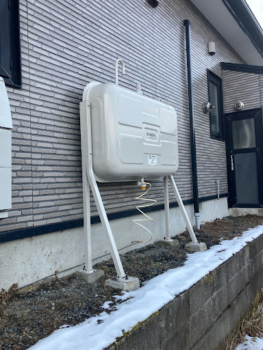 東方沖大地震の直後、「ホームタンクが転倒している」という切実なご相談をいただきました。 お客様は当初、家中のストーブが点かず、さらに急にお湯が出なくなったため、石油給湯器の故障を疑いハウスメーカー様へ連絡されていました。しかしその後外を確認し、ホームタンクが完全に転倒していることが判明。日頃から灯油を配達している私たちの所へも状況確認のご依頼をいただきました。現場に急行して驚いたのは、ホームタンクが束石ごと倒れていたことです。そもそもの地盤が弱く、本来されるはずの地盤への固定がなっていませんでした。地震から守るためのアンカーボルトもしっかり締まっていましたが、土台そのものが弱ければ、せっかくのボルトも全く意味をなしません。他にも細部を確認し、ホームタンク上部にある通気管とレベルゲージの破損を確認。お客様はすでにハウスメーカーさんに連絡してあるということだったので、そのまま施工はそちらにお願いし、私たちからはホームタンクはそのまま使えないので新品への交換の必要性・そして地盤の弱さについてもお伝えしました。